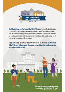 La Red Conéctate por Tu Seguridad Toluca (RCxTS Toluca) es una red ciudadana local de trabajo colaborativo que une a distintos actores clave y habitantes para mejorar la seguridad ciudadana y la convivencia en la capital mexiquense.